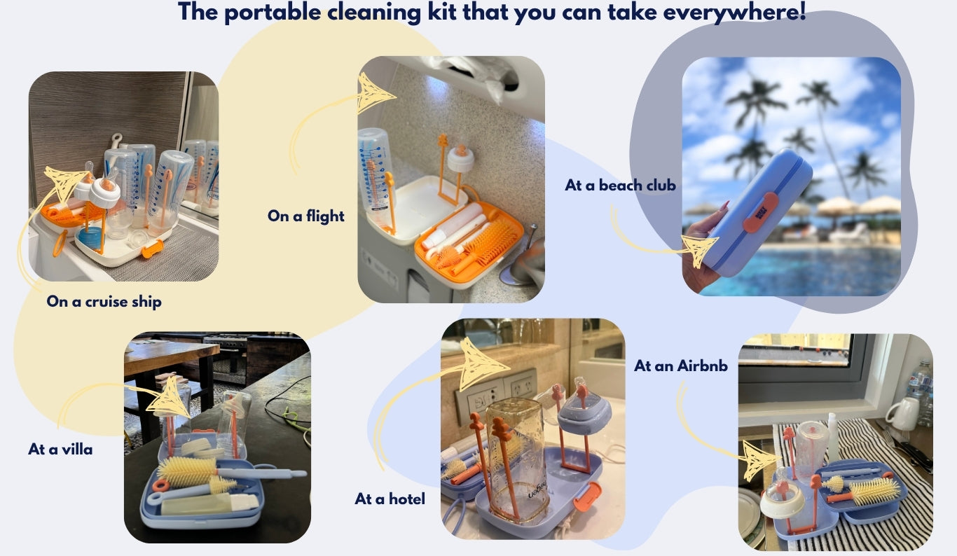 The Jetsetter is your ticket to worry-free outings, allowing you to enjoy every moment without fretting over makeshift cleaning solutions. Whether you're heading to a family barbecue or visiting a friends house with no kids, the Jetsetter ensures that your baby's feeding essentials are clean, organised, and ready to use at a moment's notice.